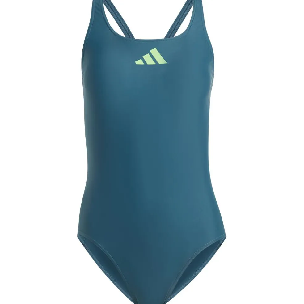 Het adidas 3 Bar Logo badpak voor dames heeft een strakke pasvorm en heeft een middenhoge rug opening. Het badpak voelt aangenaam aan op de huid en de stof is chloorbestendig.