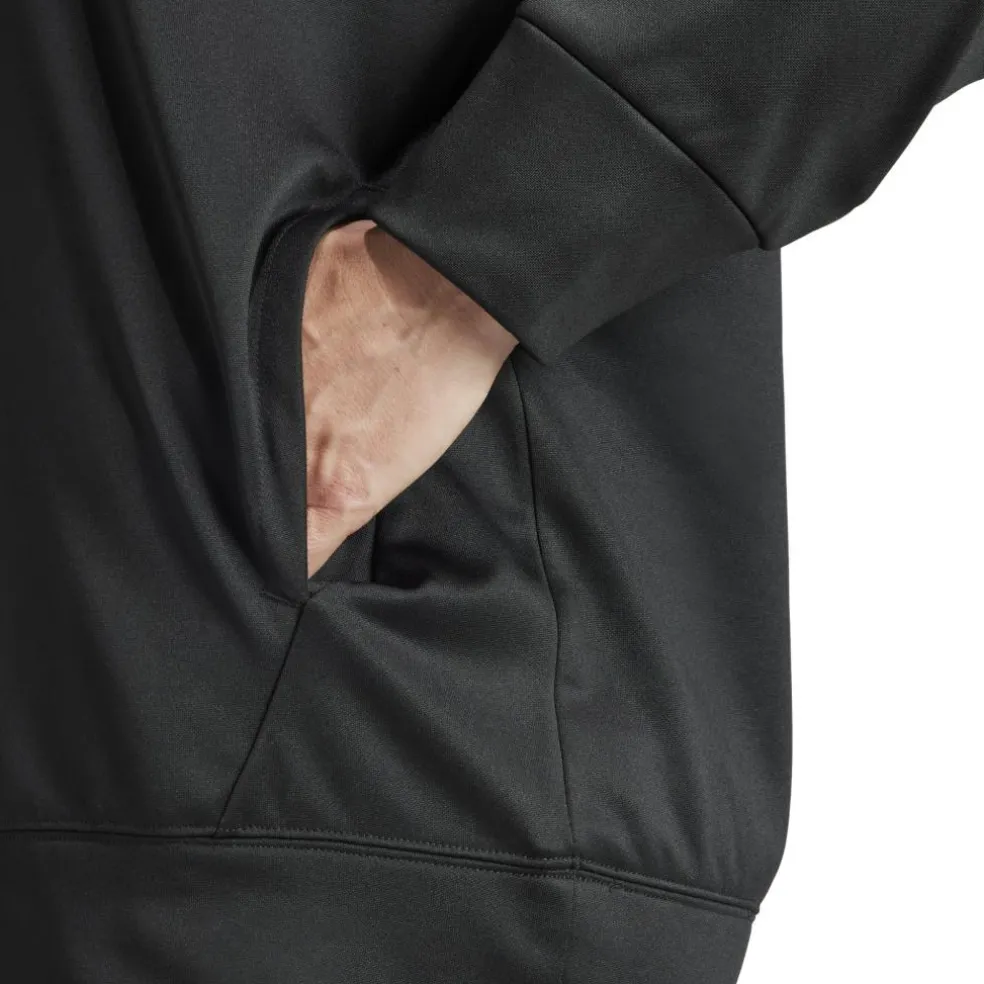 Deze Game and Go hoodie van adidas is gemaakt van fleecemateriaal wat u warm houdt en heeft zakken aan de zijkant om uw handen in op te warmen of kleine benodigdheden in te doen. De capuchon heeft een verstelbaar trekkoord, waardoor u bijvoorbeeld de wind uit uw nek kunt houden wanneer u buiten aan het trainen bent.