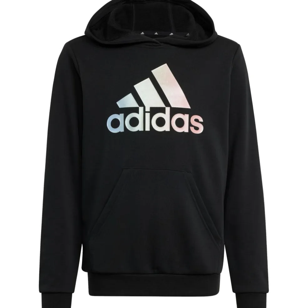 Deze adidas Metallic Print hoodie voor kinderen heeft een minimalistische design met een zachte binnenzijde die uw kind aangenaam warm houdt. Door de geribde boorden blijft kou goed buiten de hoodie.