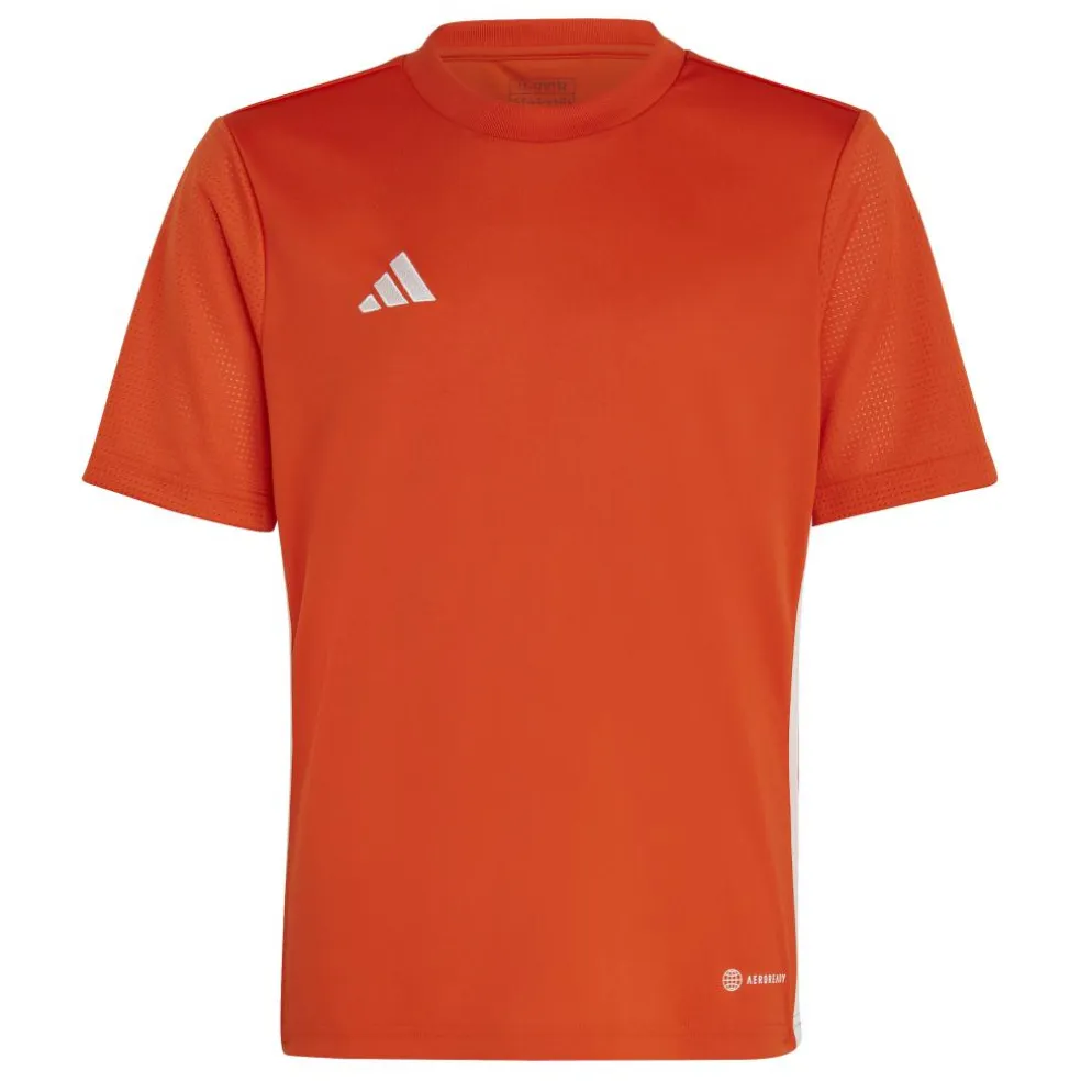 Het adidas Tabela voetbalshirt voor kinderen beschikt over vochtabsorberend AEROREADY en mesh mouwen. Hierdoor blijft het shirt comfortabel en droog, ook bij lange sportsessies. De pasvorm is normaal en het shirt is gemaakt van gerecycled polyester.