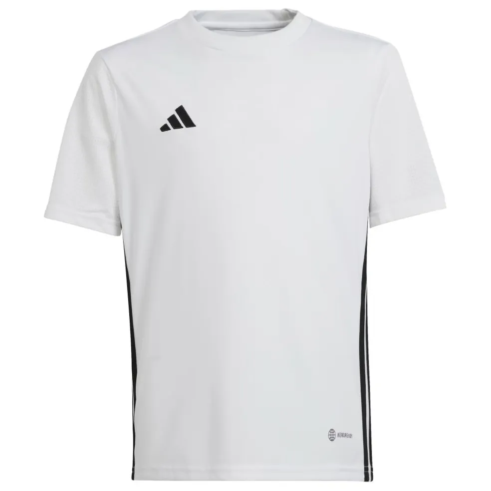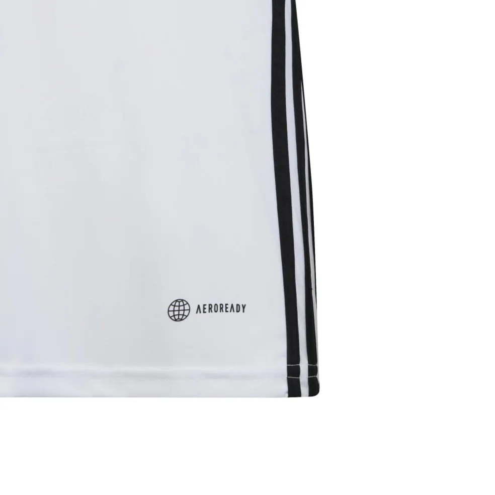 Het adidas Tabela voetbalshirt voor kinderen biedt voldoende bewegingsvrijheid dankzij het comfortabele materiaal en de normale pasvorm. Dit shirt is voorzien van kenmerkende adidas-accenten en is uitgerust met vochtabsorberende AEROREADY-technologie. Daarnaast hebben de korte mouwen een sneldrogende meshstructuur.