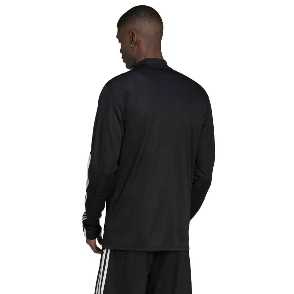 Het adidas Tiro Essentials heren trainingsjack is geschikt als extra laag tijdens de trainingen. Het materiaal is voorzien van AEROREADY technologie, waardoor het vochtafvoerend is. Zo blijft de huid droog.