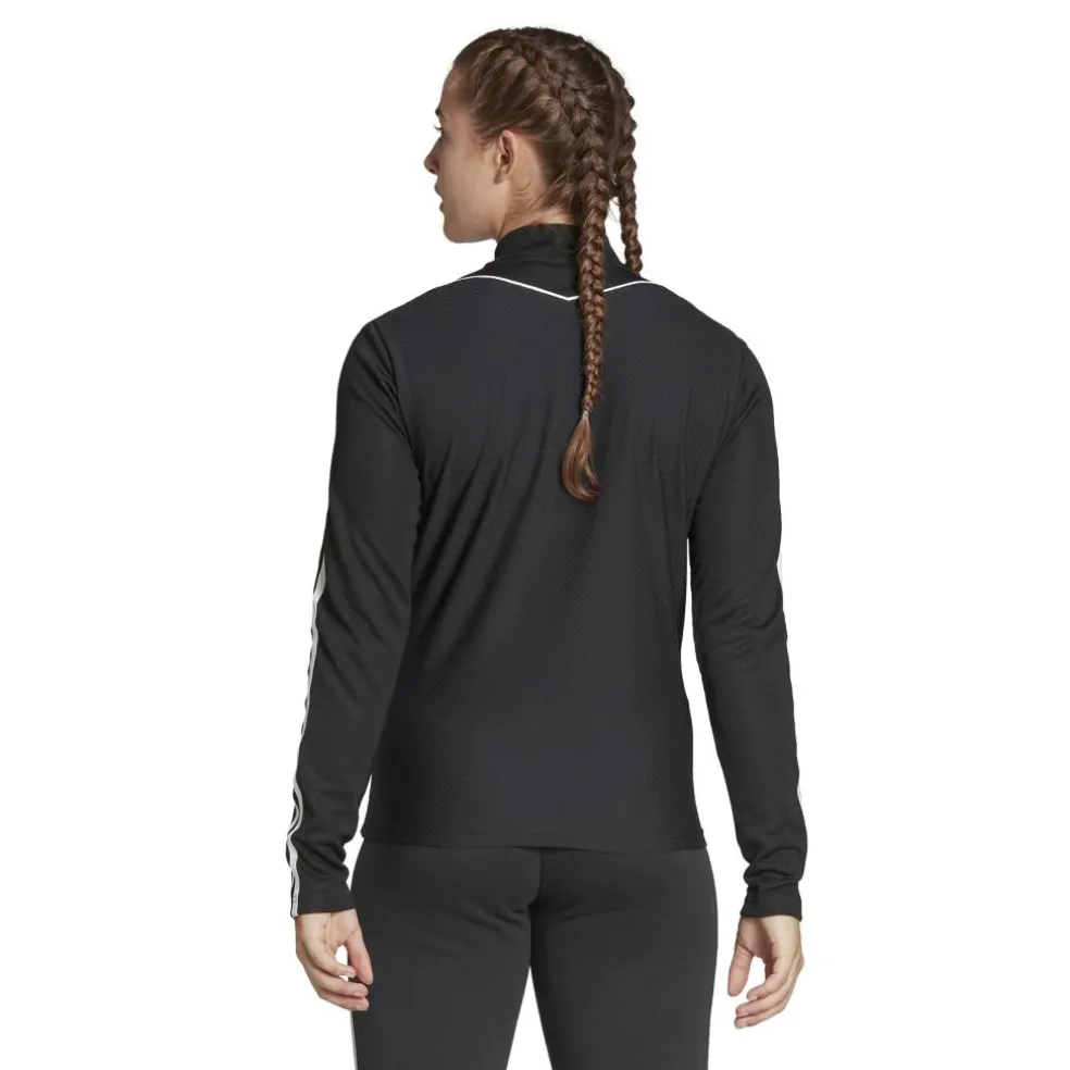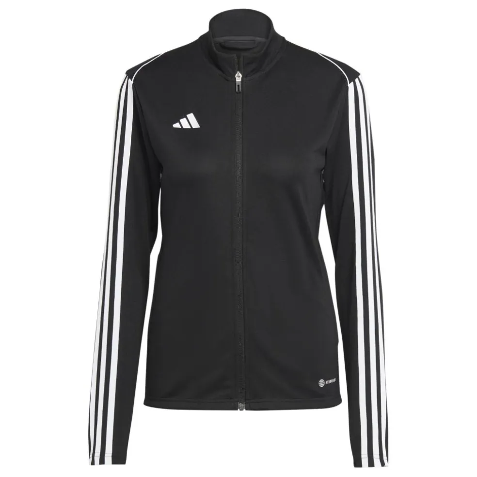 Het adidas Tiro trainingsjack voor dames is de perfecte extra laag om warm te blijven tijdens het sporten. Dit sportieve slim fit jack beschikt over een hoge ritssluiting. De tailleband heeft een elastische werking. Bovendien zorgt het polyester met AEROREADY-technologie voor een sneldrogend effect.
