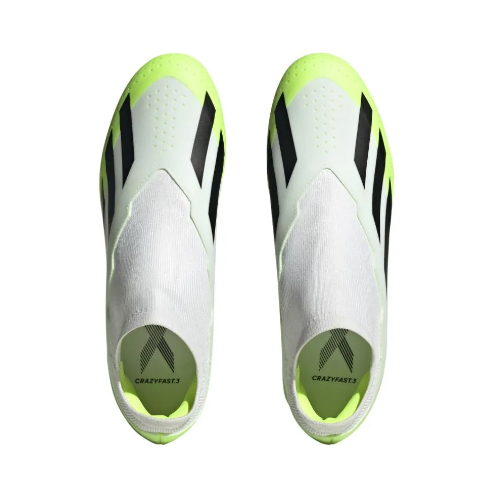 De adidas X Crazyfast.3 ll FG voetbalschoenen voor heren hebben een veterloze constructie en hebben een normale pasvorm die makkelijk aan en uit te trekken is. De schoenen hebben een gecoat bovenwerk en het design is opvallend. Met deze schoenen bent u de snelste op het veld. De schoenen voelen licht, zitten stevig en bieden extra grip op het veld.