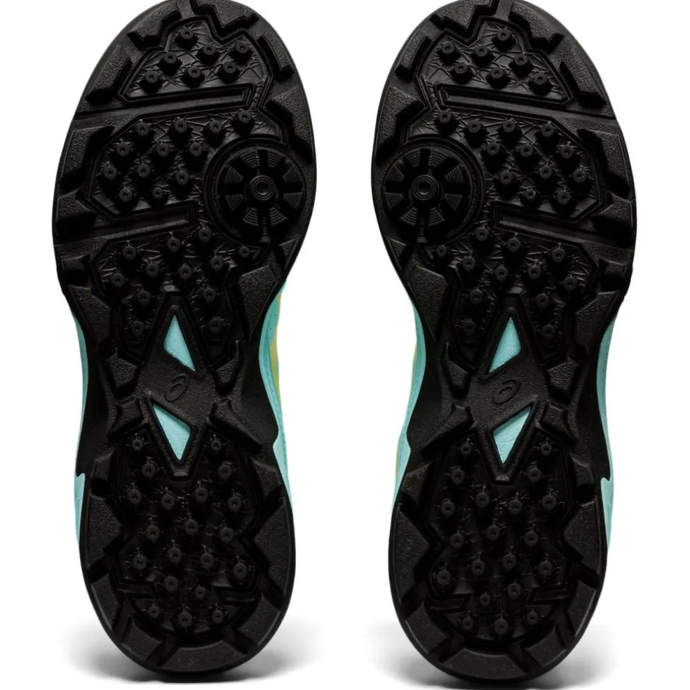 Deze ASICS Gel-Peake hockeyschoenen dames clear blue glow yellow geven de sporter veel steun en stabiliteit. Het bovenwerk bestaat uit synthetisch materiaal met overlays van synthetisch leer en versterkingspanelen aan de zijkant wat voor die stabiliteit zorgt. Voor een prettige demping zitten in deze ASICS hockeyschoenen GEL units in de hakken. De schoenen zijn geschikt voor zand- en watervelden.