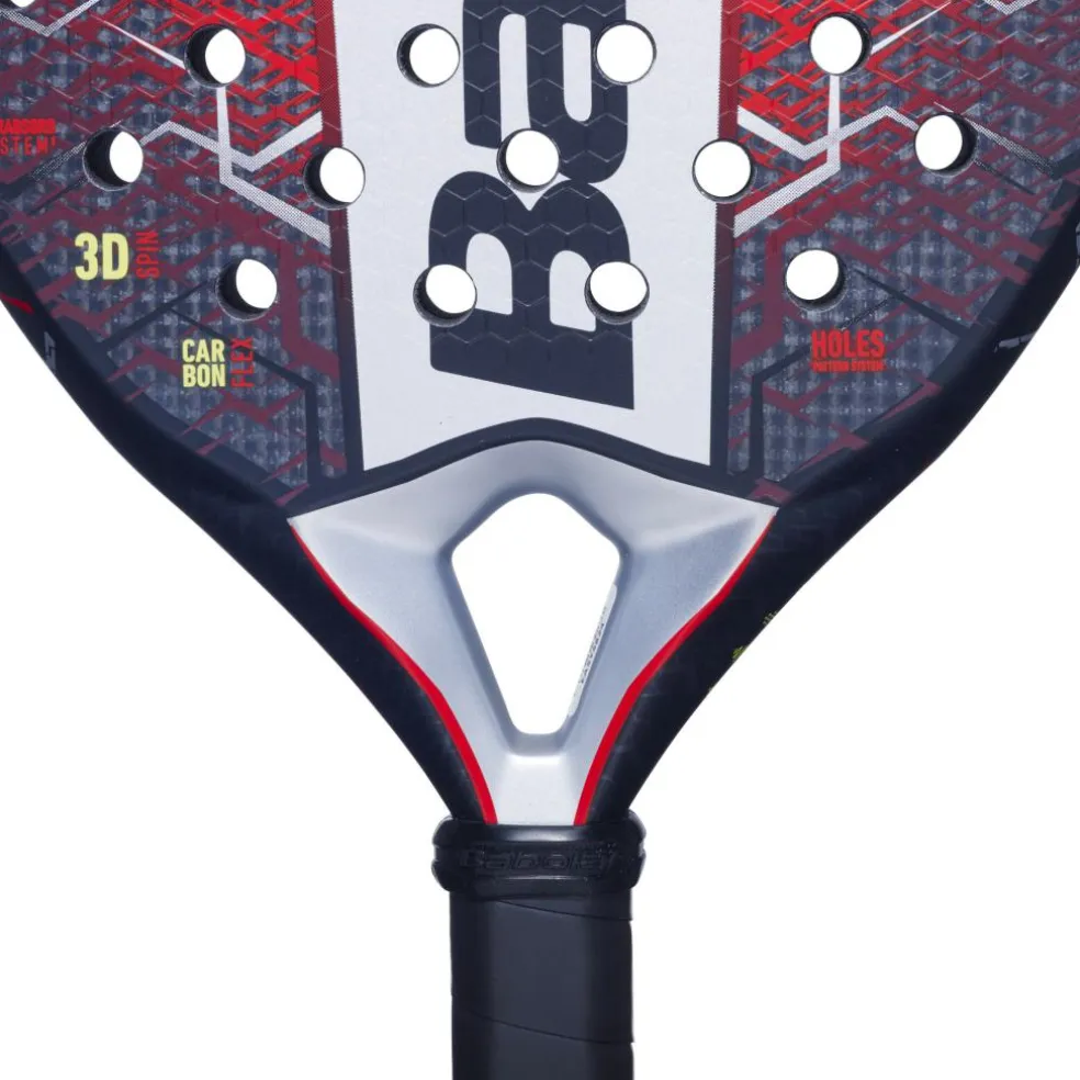 Het Babolat Technical Veron padel racket biedt veel kracht en uitstekende speelbaarheid. Dankzij het diamantvormige gatenpatroon zijn uw slagen extra krachtig. Bovendien zorgt de CARBON FLEX technologie voor een hoge mate van speelbaarheid. Ook biedt het padel racket van Babolat veel comfort dankzij het VIBRASORB SYSTEM, dat zorgt voor een optimale filtering van trillingen.