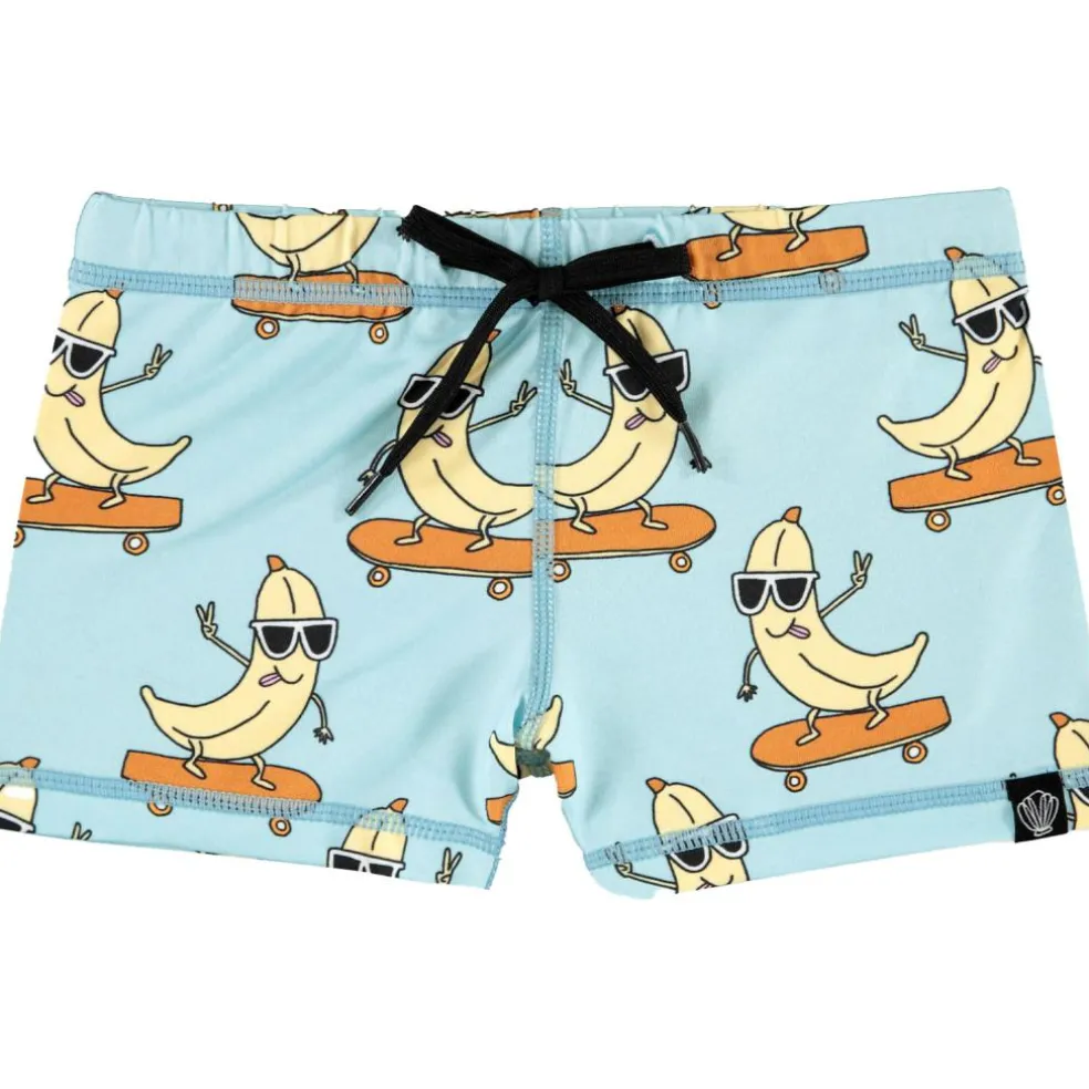 De Beach & Bandits Let it Slide zwemboxer is voorzien van een rekbare tailleband met trekkoord, waardoor de pasvorm aangenaam en verstelbaar is. Het materiaal beschermt de huid van uw kind tegen schadelijke uv-straling en omdat deze zwembroek sneldrogend is, hoeft uw kind nooit lang te wachten tot hij droog is.