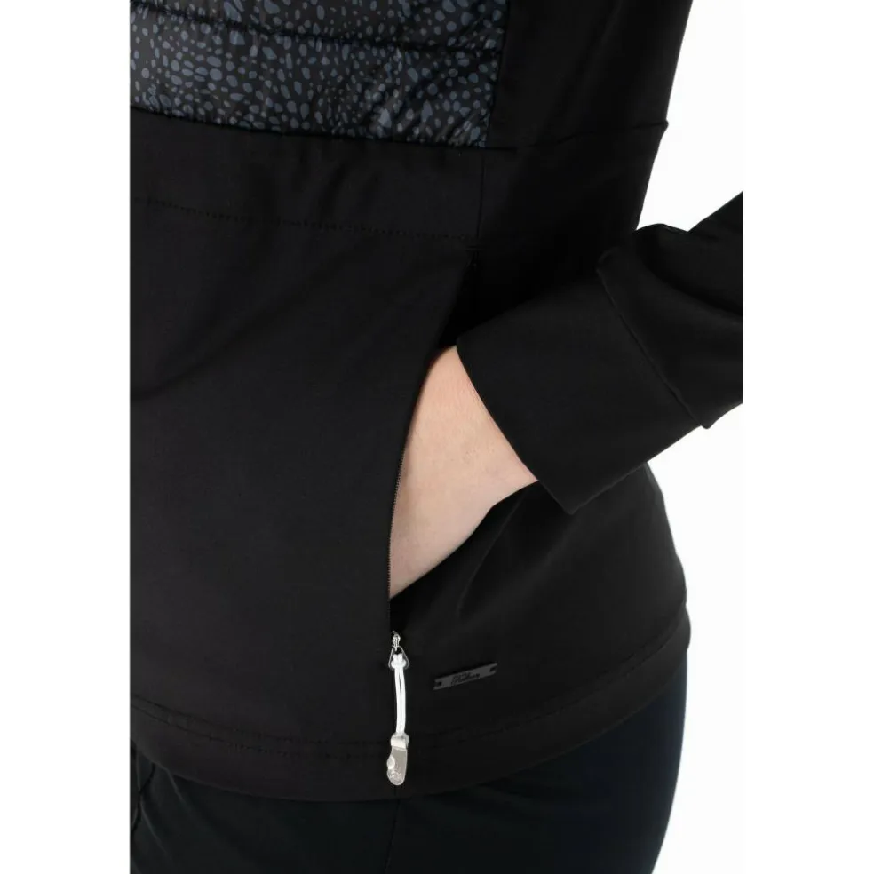 De voorkant van het Celia trainingsjack van Falcon is gevoerd en heeft een print. Het materiaal van het vest is rekbaar en rondom de taille zit een trekkoord voor een betere pasvorm.