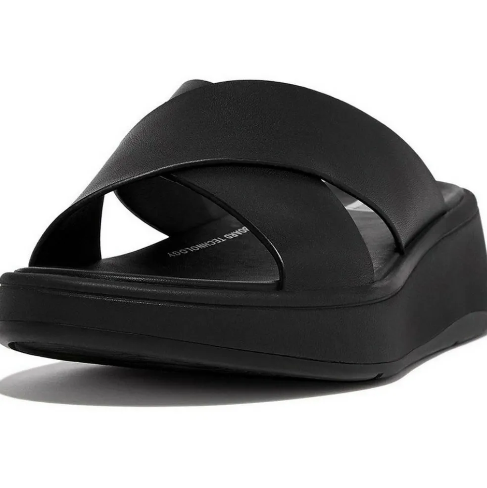 De FitFlop F-Mode Leather Flatform Cross slippers voor dames hebben een chique uitstraling en lopen heerlijk dankzij het lederen voetbed. De Slip-Resistant rubberen loopzool zorgt voor de nodige grip en de revolutionaire Microwobbleboard-technologie in de tussenzool zorgt voor extra demping en comfort.