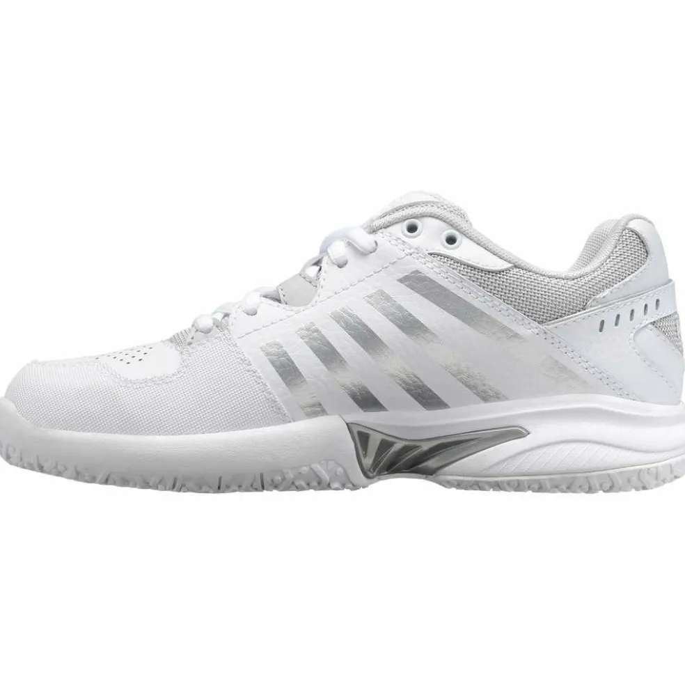 De K-Swiss Receiver V Omni tennisschoenen voor dames hebben een minimalistische look. De dempende zool in combinatie met de ademende upper zorgt voor een comfortabel draaggevoel. Deze schoenen zijn speciaal ontworpen om uw spel naar een hoger niveau te brengen.