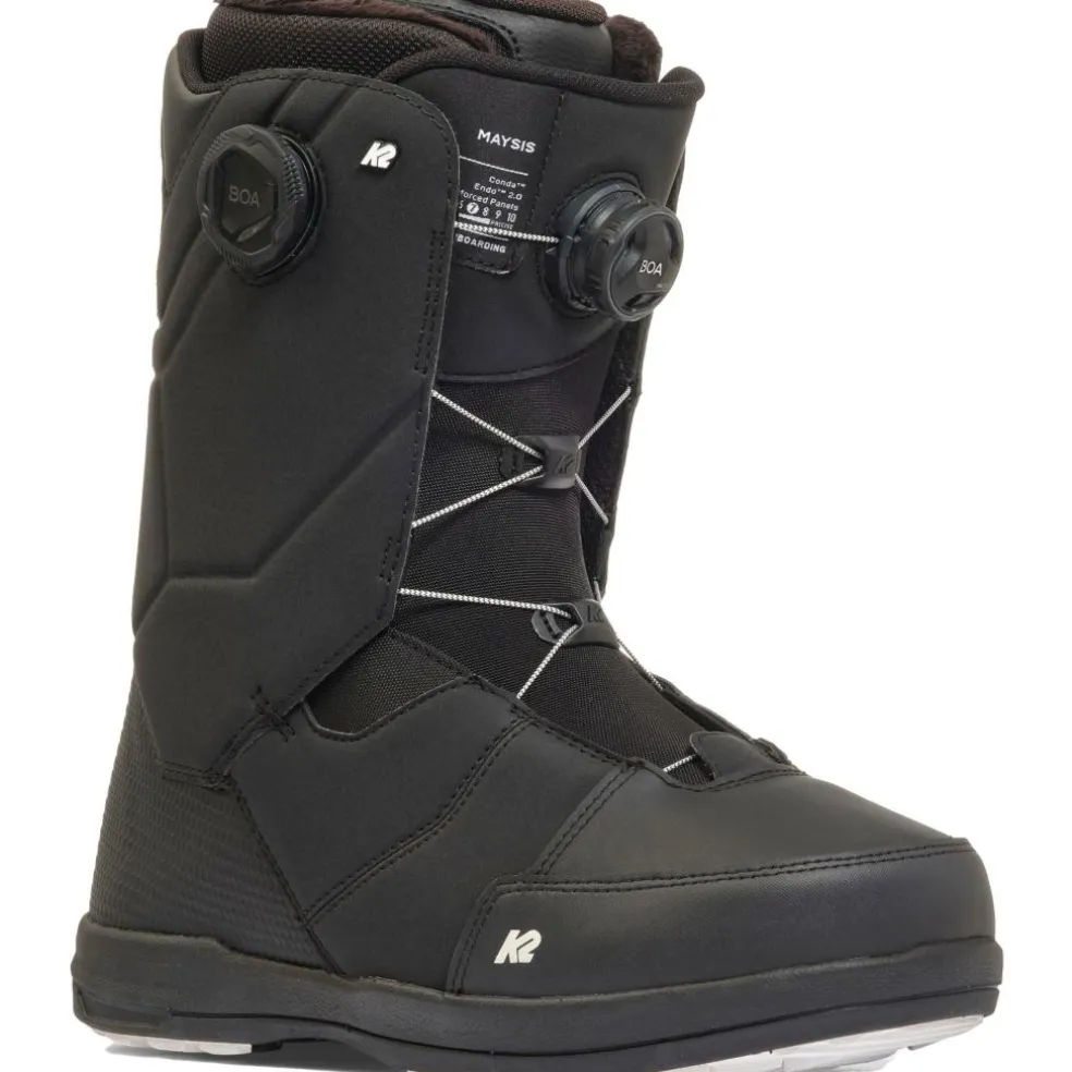 De K2 Maysis snowboardschoenen voor heren zitten als gegoten. Deze snowboardschoenen van K2 hebben een Intuition foam voering die zich vormt naar uw benen, enkels en voeten. Door middel van de BOA sluiting kunnen de schoenen eenvoudig aangetrokken worden. De rubberen zool zorgt voor goede demping en grip.