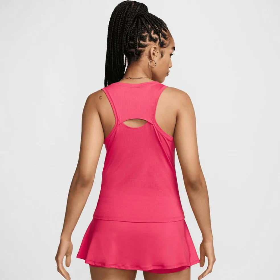 Deze Nike Court Victory tennis tanktop voor dames is gemaakt van een zacht knit materiaal die sneldrogende eigenschappen heeft. De tanktop heeft een ronde zoom en een V-hals voor meer draagcomfort. De uitgesneden vlakken op de rug laten de tanktop meer ventileren, zodat u het niet te warm krijgt tijdens het tennissen.