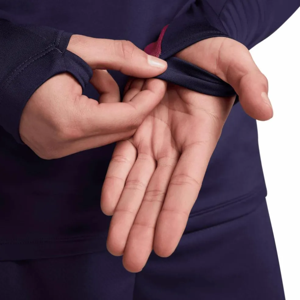 Het Nike Engeland Strike Dri-FIT trainingsshirt is uitgevoerd in een slim fit. De lange mouwen zijn voorzien van duimgaten om de mouwen goed op hun plek te houden. De toegepaste Dri-FIT technologie zorgt voor een snelle afvoer van transpiratievocht wat het lichaam droog en comfortabel houdt.