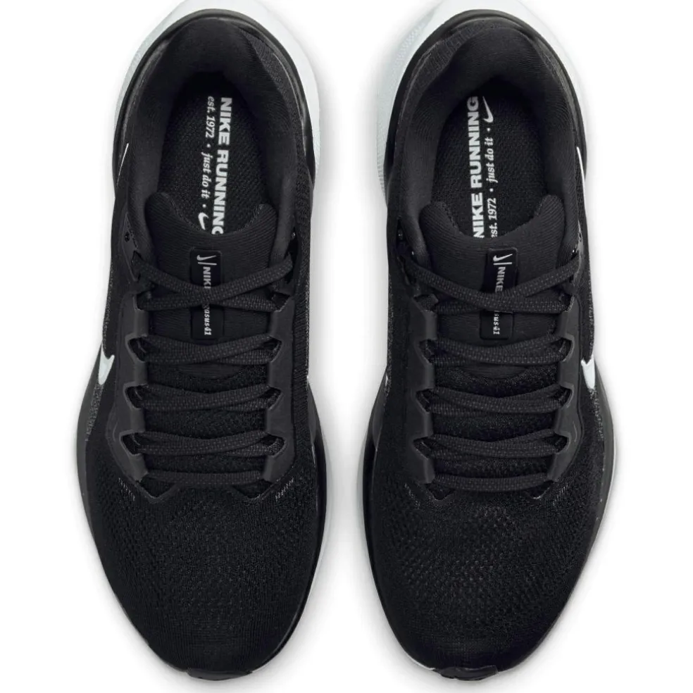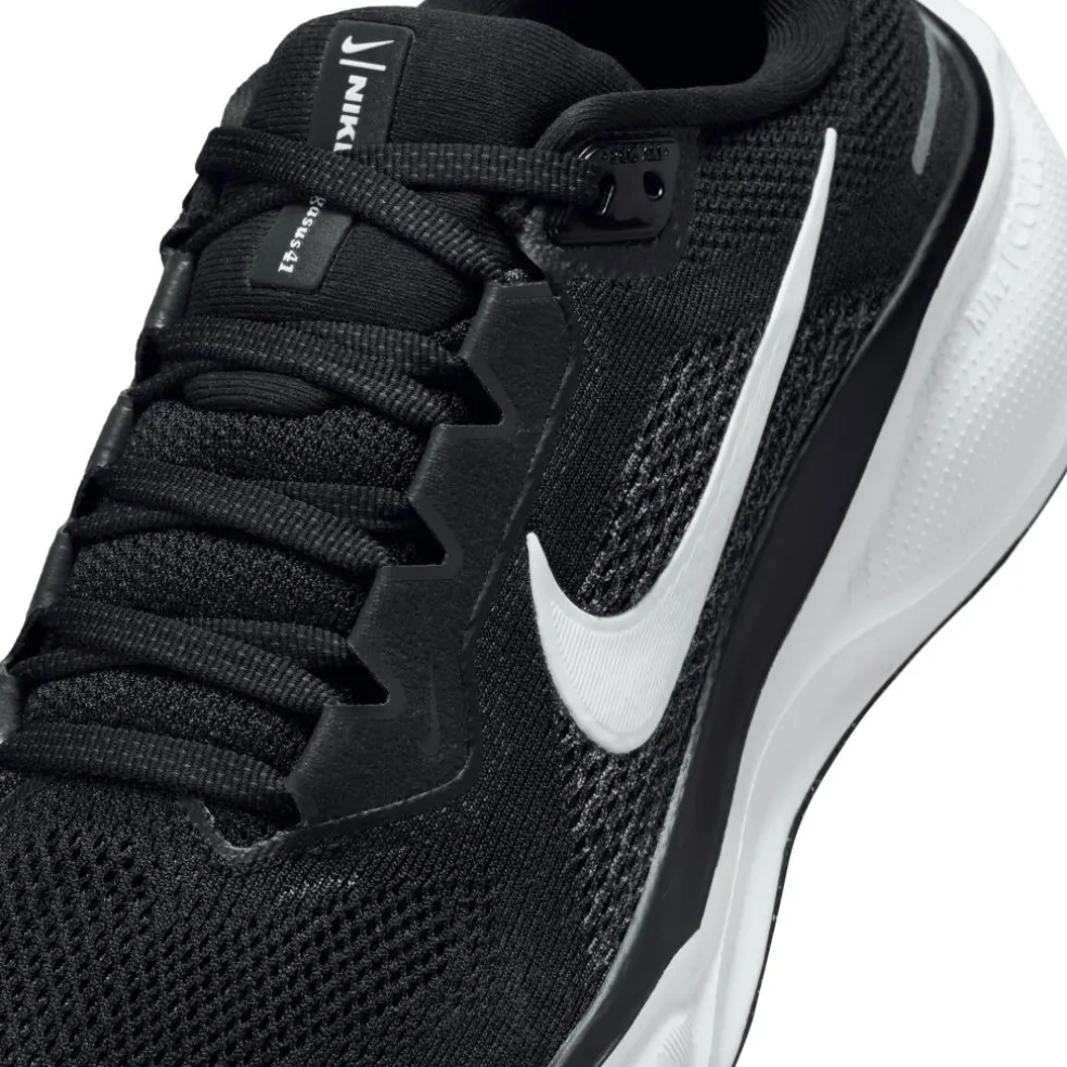 De Nike Pegasus 41 hardloopschoenen voor dames bieden een dempend gevoel bij elke stap, dankzij de ReactX foam tussenzool. De schoenen sluiten goed rondom de voeten aan en door het mesh bovenwerk zitten de schoenen stevig en voelen deze licht. Verder zorgt het mesh bovenwerk voor ventilatie, zodat de schoenen goed kunnen ademen. De buitenzool heeft een wafelpatroon die voor uitstekende grip zorgt op verschillende ondergronden.