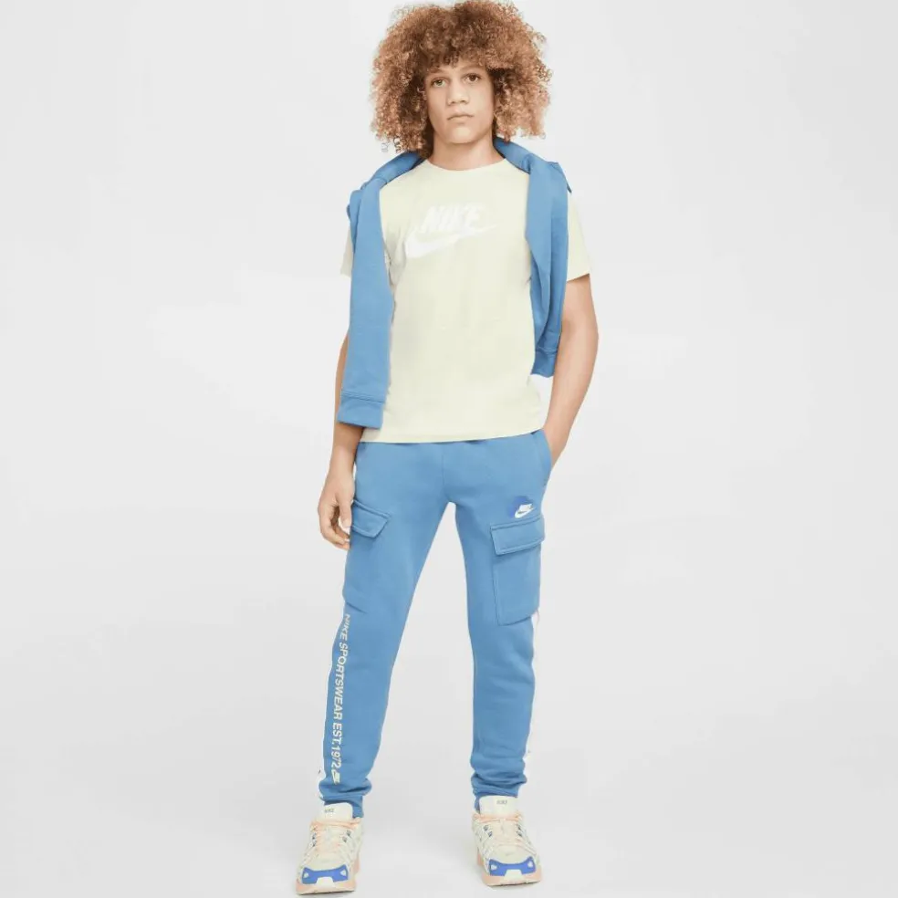 De Nike Standard Issue Cargo joggingbroek voor kinderen is van licht en zacht aanvoelend materiaal gemaakt. De cargozakken zijn uitgevoerd met drukknopen.