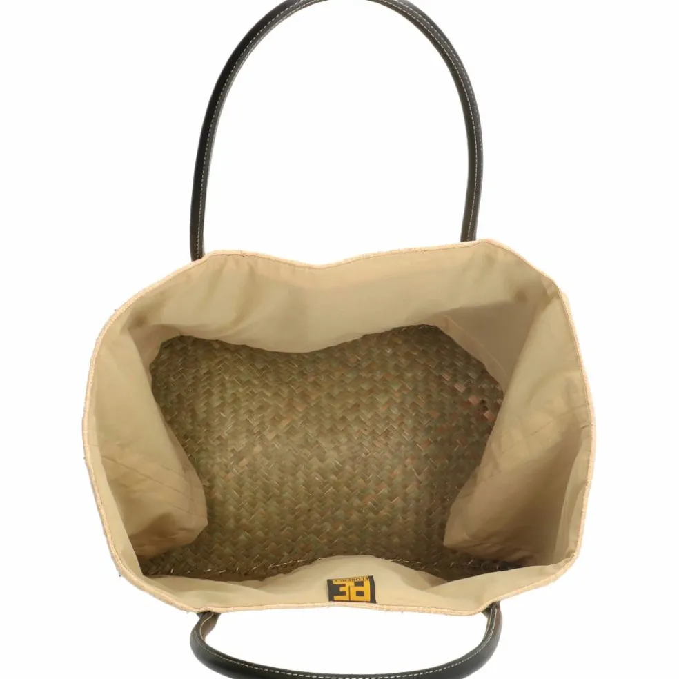 De PE Florence rieten strandtas met raffia is een ruime tas die u kunt gebruiken voor een dagje strand of tijdens het boodschappen doen. De tas is af te sluiten met een trekkoord. In de tas bevindt zich een klein vakje, zodat u uw waardevolle spullen veilig op kunt bergen.
