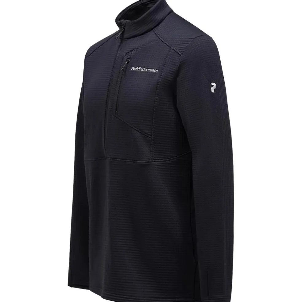 De Trail Polartec skipully van Peak Performance heeft een halve rits met kinbeschermer, waarmee u de skipully gemakkelijk aan kunt trekken. Op de borst zit een zakje met rits voor kleine spullen. De kraag staat omhoog, waardoor er meer wind tegengehouden wordt.