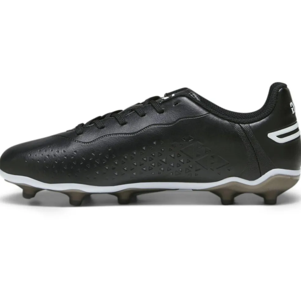 De Puma KING MATCH FG AG voetbalschoenen voor kinderen hebben een vetersluiting die voor een goede en comfortabele pasvorm zorgen. Deze stevige lichte schoenen hebben een TPU-buitenzool met stevige noppen die voor een goede grip zorgen. Zo zijn de schoenen geschikt voor graas en kunstgras ondergronden. Het zachte bovenwerk zorgt voor een fijn balgevoel en voor een goede controle.
