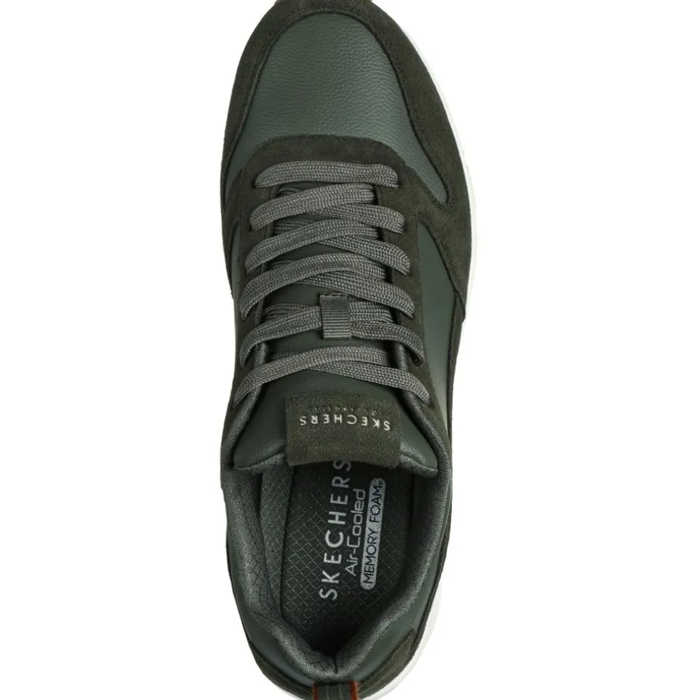 Deze sportieve UNO – Stacre schoenen van Skechers hebben een strak design die bij elke outfit past. De schoenen zorgen de hele dag voor een zacht dempend gevoel aan de voeten. Dit komt door de air-unit in de zool, maar ook dankzij de zachte Air-Cooled Memory Foam binnenzool. Daarnaast zorgt de buitenzool voor een goede grip.