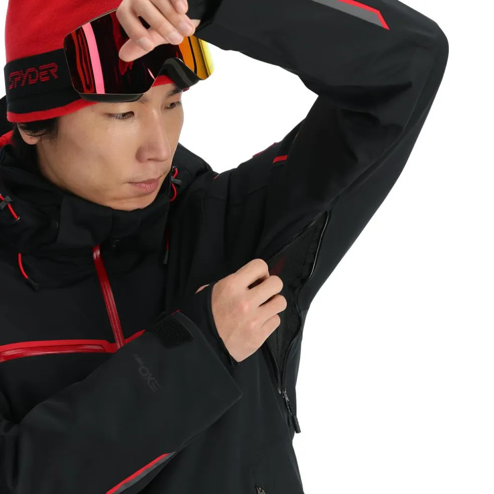 Deze waterdichte Spyder Titan winterjas voor heren biedt een hoge bescherming tegen verschillende weersomstandigheden. De ski jas is gemaakt van hoogwaardige materialen die zijn behandeld en hierdoor hebben ze ook een hoog ademend vermogen en zijn ze winddicht. Zo blijft u lekker comfortabel warm en droog. Daarnaast kunt u de temperatuur en extra ventilatie makkelijk reguleren door de ritssluitingen onder de oksels. De geïsoleerde ski jas is voorzien van een helm-compatibele capuchon en sneeuwvanger.