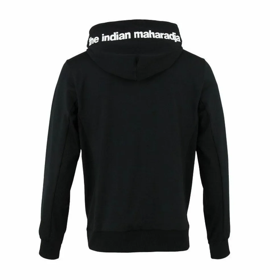 The Indian Maharadja Hooded trainingsjack Kadiri heeft een aansluitende pasvorm. Door het gebruik van ribmateriaal in de zijpanelen en mouwen heeft u extra bewegingsruimte. Het rubberprint logo op de rand van de capuchon maakt dit jack helemaal af.