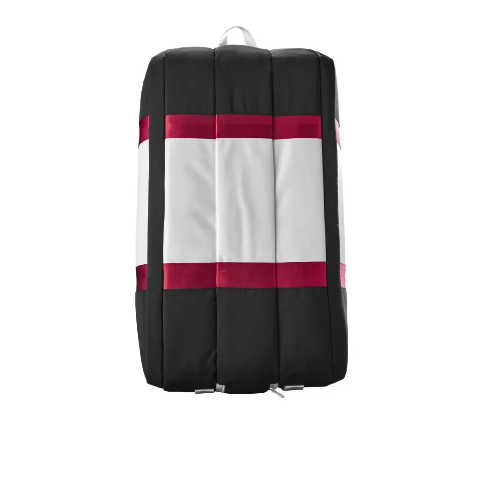 De Wilson Courage Collection 15 tennistas is geïnspireerd door de Olympische Spelen van 2024 in Parijs en Wilson’s 110-jarig jubileum. Deze tas biedt plaats aan maximaal 15 tennisrackets met drie ruime hoofdvakken. De tas is uitgerust met het Dual Carrying System, een geventileerd schoenenvak, Thermoguard racketvakken en twee ruime zijvakken met ritssluiting, voor extra functionaliteit en duurzaamheid. Het verstevigde materiaal garandeert extra lange levensduur.