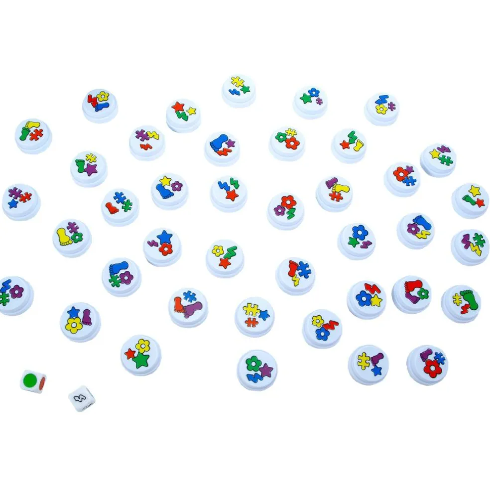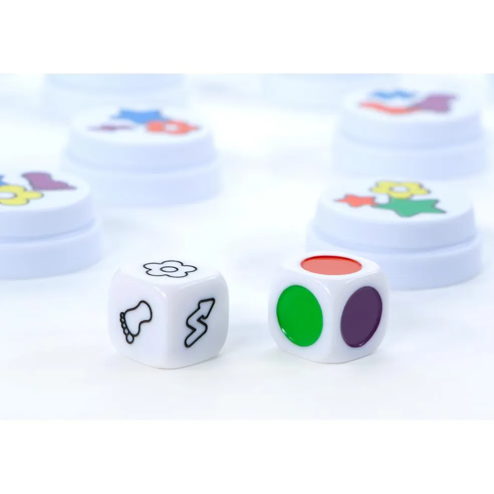 Het 999 Games Klik! actiespel is razendsnel, chaotisch en perfect voor mensen die van reactiespellen houden. Dit spel wordt gespeeld met dobbelstenen en schijven, de schijven bevatten verschillende symbolen. Gooi de dobbelstenen en bekijk welke schijven u mag toevoegen aan uw stapel. Pakt u een schijf met een verkeerd symbool? Dan verliest u schijven van uw stapel. De speler die aan het einde van het spel de hoogste stapel heeft, is de winnaar! Dit actiespel is met twee tot zes personen te spelen.