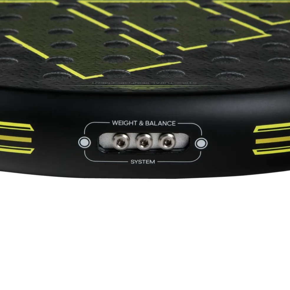 Het adidas Adipower Multiweight 3.3 padel racket heeft een sterk frame dankzij de carbon structuur in de kern. Het padel racket heeft een fijne balans en gewicht die eventueel aangepast kan worden tot 9 gram. Aan de zijkant van het padel racket kunnen er totaal 7 schroeven verdeeld worden om het racket op uw voorkeur aan te passen. Met dit racket kunt u krachtige slagen maken en de bal een spineffect geven.