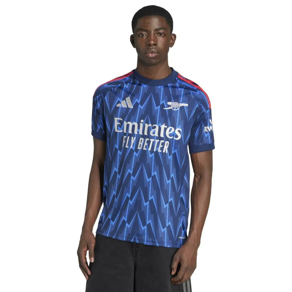 Het adidas Arsenal uitshirt voor heren laat de geschiedenis van de club met een iconisch motief. Het shirt is gemaakt met vochtregulerende AEROREADY technologie en soepel interlockmateriaal, wat zorgt voor een zachte en comfortabele pasvorm.