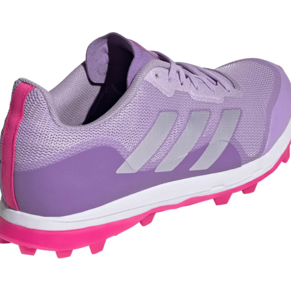 De adidas Fabela Zone hockeyschoenen voor dames hebben een ademend bovenwerk van mesh, waardoor frisse lucht rondom de voeten blijft. De loopzool biedt voldoende grip op het veld tijdens bewegingen in verschillende richtingen. Daarnaast beschikken de hockeyschoenen van adidas over een externe hielcounter voor extra stabiliteit. Deze hockeyschoenen helpen u om de controle te behouden en de wedstrijd te domineren.
