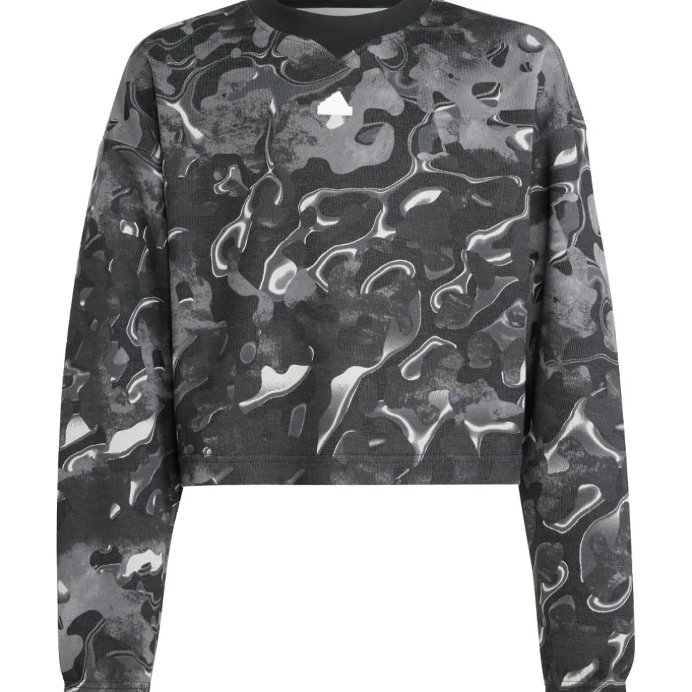 De adidas Future Icons sweater voor kinderen heeft een uniek opvallend design. Deze sweater voelt comfortabel en is ideaal om in te chillen. De sweater is gemaakt van gerecycled materiaal. Het korte model valt los langs het lichaam en heeft een ronde halslijn.