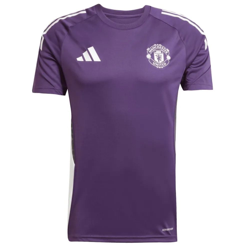 Dit adidas Manchester United Tiro 25 voetbalshirt is geïnspireerd op de kleuren van het uittenue. Spelers dragen dit shirt tijdens de voorbereiding op een wedstrijd. Het is gemaakt van zacht interlock materiaal, dat behandeld is met de AEROREADY technologie waardoor het shirt een vochtregulerende eigenschap heeft en een hoog draagcomfort biedt. Hierdoor is het shirt perfect om in te trainen.