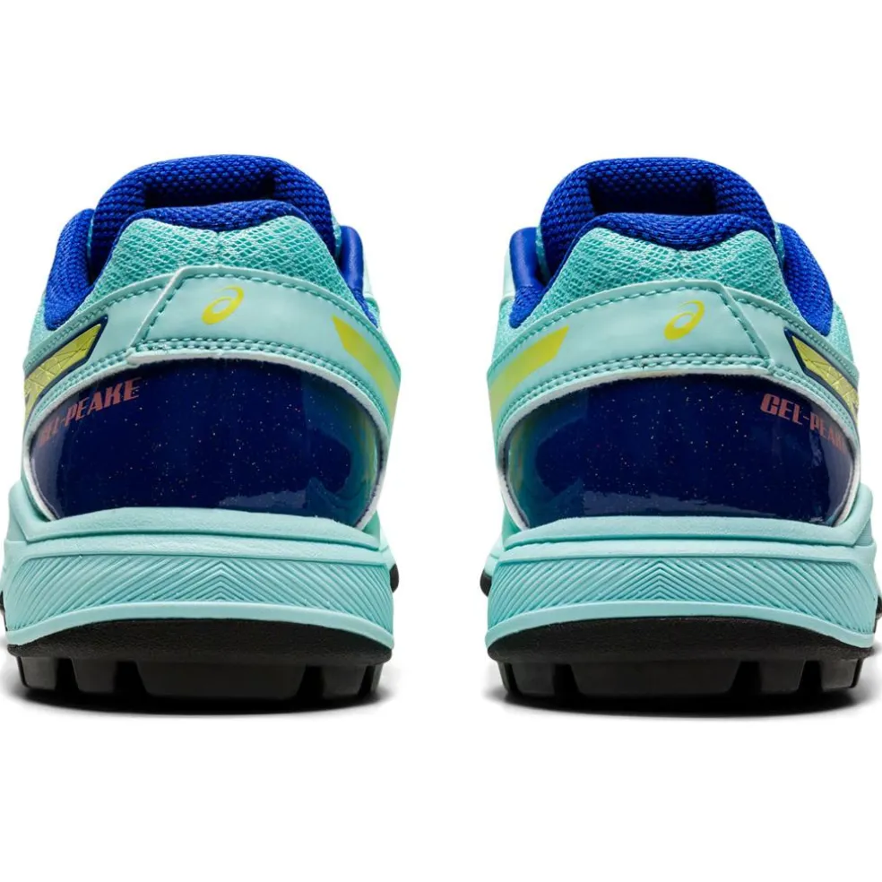 Deze ASICS Gel-Peake hockeyschoenen dames clear blue glow yellow geven de sporter veel steun en stabiliteit. Het bovenwerk bestaat uit synthetisch materiaal met overlays van synthetisch leer en versterkingspanelen aan de zijkant wat voor die stabiliteit zorgt. Voor een prettige demping zitten in deze ASICS hockeyschoenen GEL units in de hakken. De schoenen zijn geschikt voor zand- en watervelden.