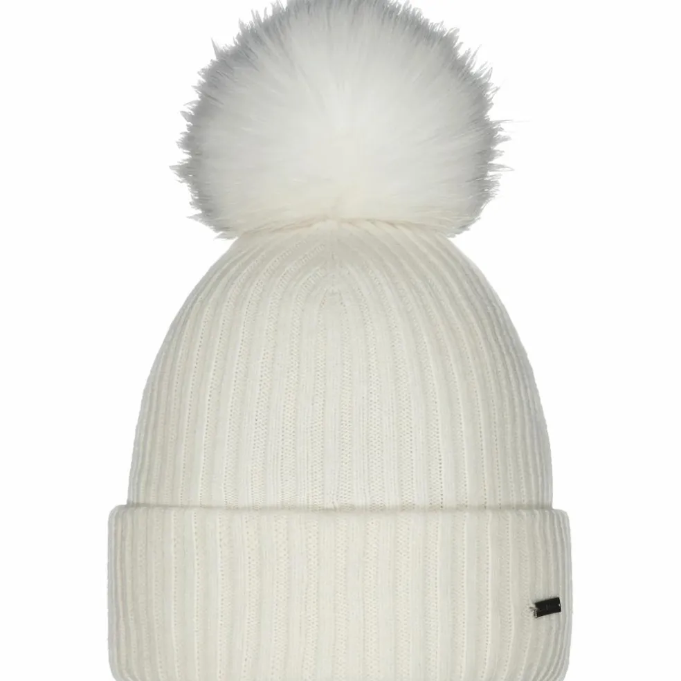 De Barts Kenzie muts voor dames is een comfortabele grote muts met een brede omslag. De Barts muts heeft een grote pompon van imitatiebont.
