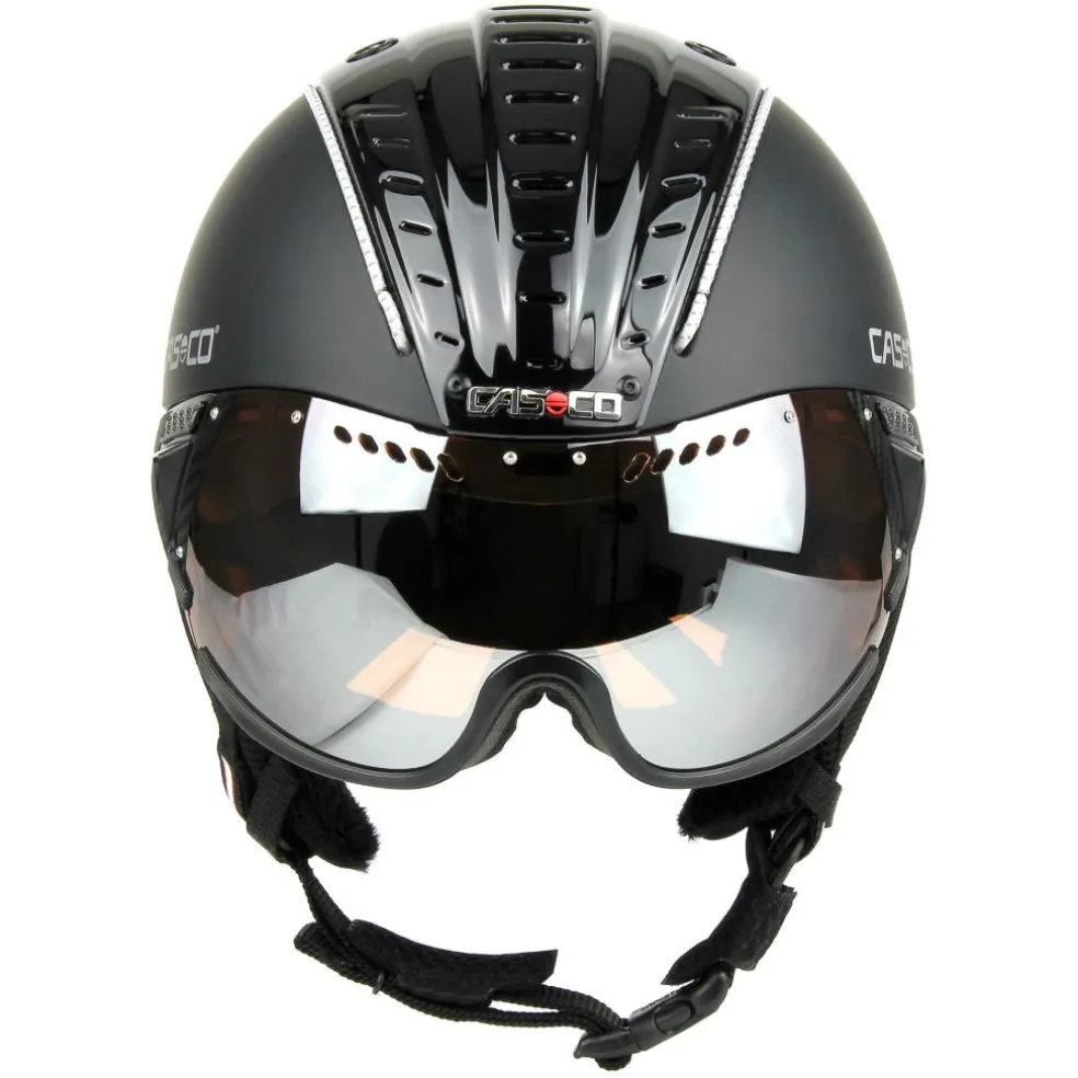 De Casco SP-2 Visor skihelm heeft een Carbonic vizier wat optimaal beschermt tegen de zon en voorzien is van een waterafstotende coating. Deze Casco vizierhelm is verstelbaar en is geschikt voor brildragers. Met MyStyle strips (niet inbegrepen) kan de helm van extra kleuraccenten worden voorzien. De SP-2 helm kan tevens gebruikt worden door schaatsers (ASTM normering). De elastische bevestiging van het vizier voorkomt dat de helm te ver naar achter schuift bij een eventuele valpartij.