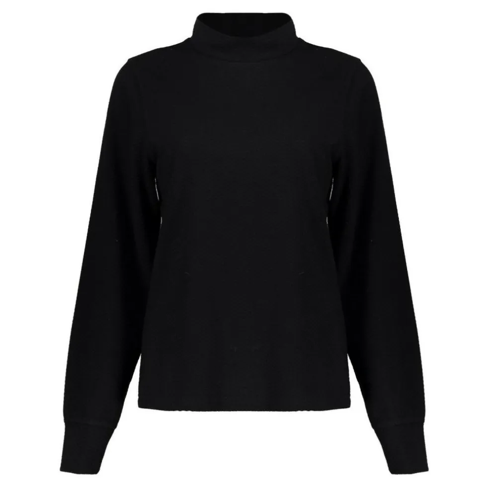 De Geisha Solid Jacquard sweater voor dames heeft een chique uitstraling en is makkelijk te combineren dankzij de zwarte kleur. Draag deze toffe sweater met een flared pantalon of jeans en een paar sneakers voor een spontante hippe look.