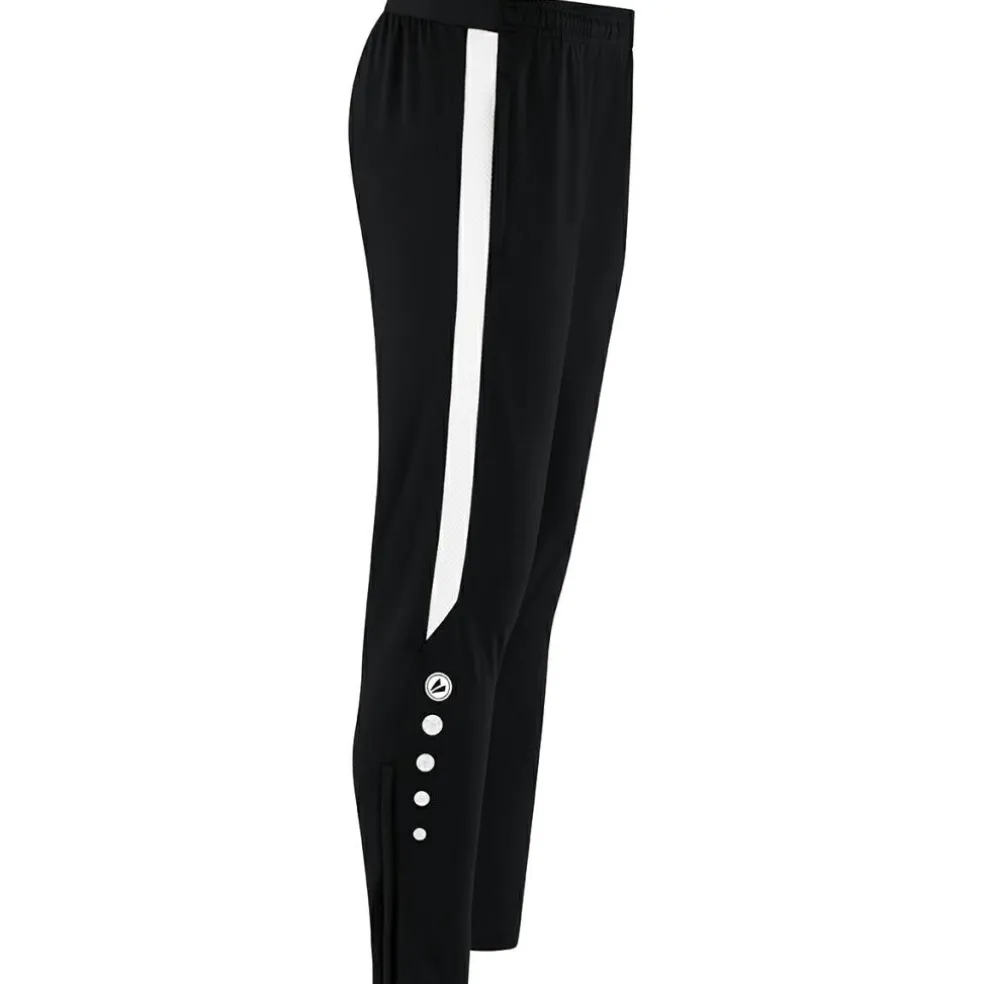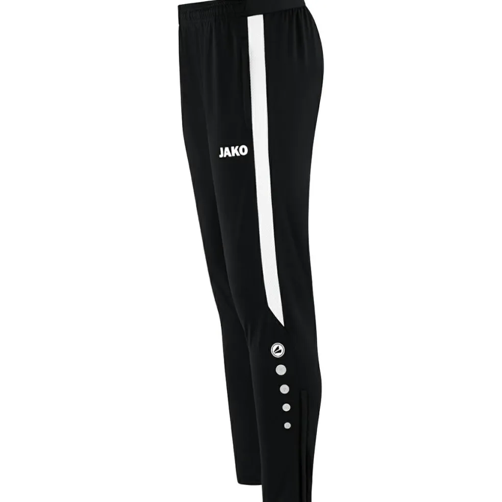 De Jako Power trainingsbroek is uitgerust met de Keep Dry functie. Deze functie transporteert vocht direct naar het oppervlak van de stof. Dit voorkomt afkoeling tijdens het sporten en zorgt voor een snelle droging van het materiaal. De tweedelige elastische tailleband met trekkoord zorgt voor een uitstekende pasvorm tijdens het trainen. De zijzakken met ritssluiting en de broekspijpen met ritssluiting voegen een extra praktisch detail toe.