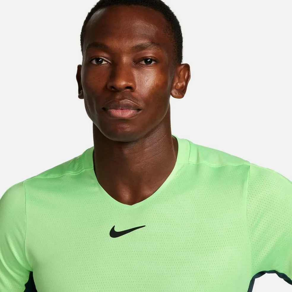 Dit Nike Court Dri-FIT Advantage tennisshirt voor heren is gemaakt om comfortabel in te sporten. Het Dri-FIT materiaal heeft een vochtafvoerende werking waardoor u ongestoord kan blijven sporten en de flitsende elementen op het tennisshirt maken het helemaal af.
