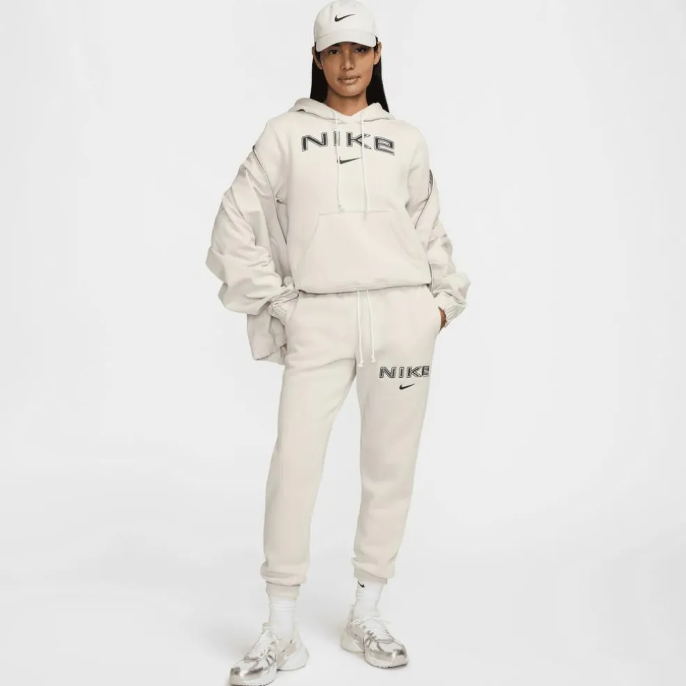 Deze Nike Sportswear Phoenix Fleece Logo hoodie voor dames is heerlijk zacht en bovendien ook warm! De trui heeft een klassiek hoodie-design met kangoeroezak en heeft op de voorzijde een sportief Nike artwork geplaatst.