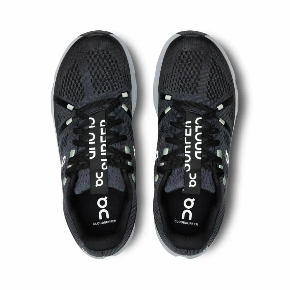 De On Cloudsurfer hardloopschoenen voor dames bieden merkbaar zachte demping. Deze geavanceerde hardloopschoenen zijn ontworpen met uitsluitend de essentiële componenten, wat resulteert in topprestaties en een lichter gewicht. Gemaakt van 30% gerecyclede materialen en geverfd met waterbesparende dope dye-technologie, dragen deze schoenen bij aan een duurzamere toekomst. Bovendien zorgen de rubberen pads voor goede tractie in zowel natte als droge omstandigheden.