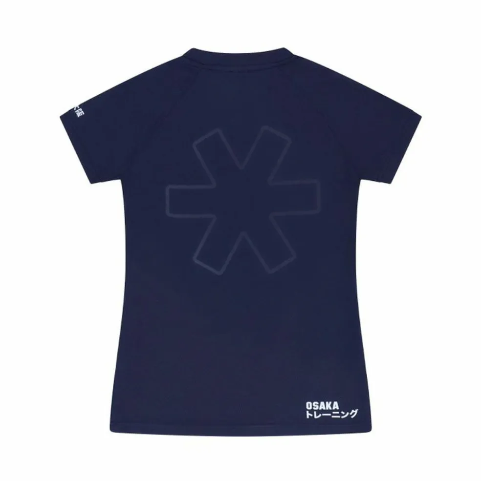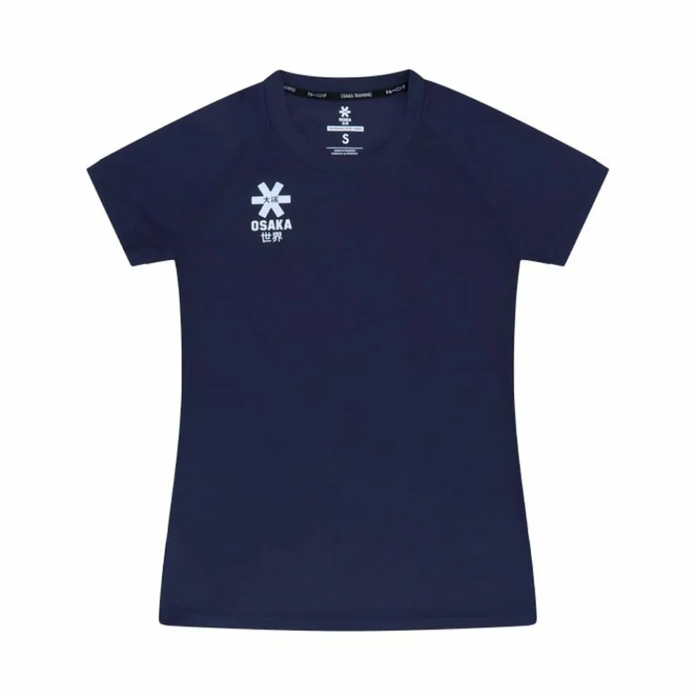 Dit Osaka Training hockeyshirt voor dames komt in de kleur navy. Dankzij het ademende materiaal van het shirt kunt u van het begin tot het einde van de training gefocust blijven. Het shirt is voorzien van een normale pasvorm en heeft Osaka World details op de voor- en achterzijde gedrukt staan.