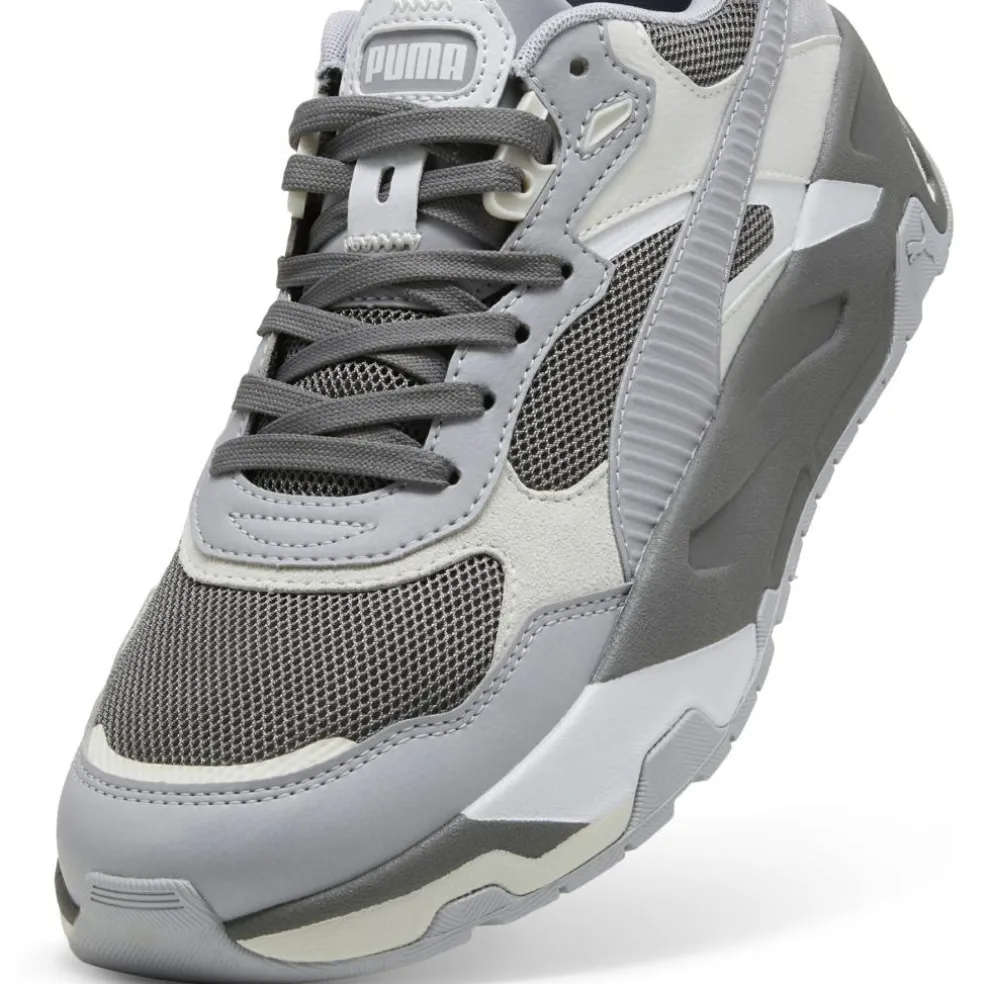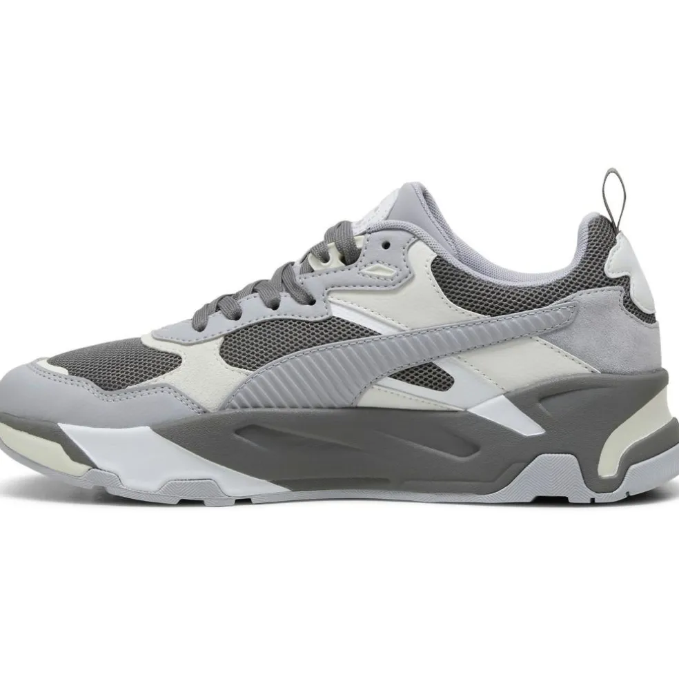 De Puma Trinity schoenen voor heren hebben een strak design die een moderne uitstraling hebben. Deze schoenen hebben een comfortabele instap en de zool zorgt voor een dempend gevoel. De schoenen zijn gemaakt van 20% gerecycled materiaal.