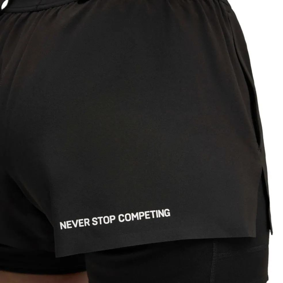 De Puma x HYROX 2 in 1 short is voorzien van een binnenbroek, zodat u veilig en optimaal kunt bewegen en uw focus kunt leggen op prestatieverbetering. De pasvorm is verstelbaar, dankzij de elastische tailleband met trekkoord en omdat het materiaal vocht afvoert, behoudt u de gehele HYROX een comfortabel, droog gevoel.