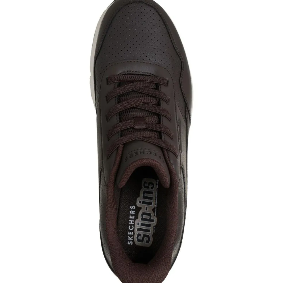 Deze modieuze Slip-ins: UNO – Banksia Luxe schoenen van Skechers hebben een zichtbare air-unit in de zool, dat voor demping zorgt. Door de Heel Pillow schuift u makkelijk in de schoen, waardoor de schoen goed aansluit en stevig zit. Verder zorgt de Air-Cooled Memory Foam binnenzool voor een zachte instap en een verend gevoel bij elke stap.