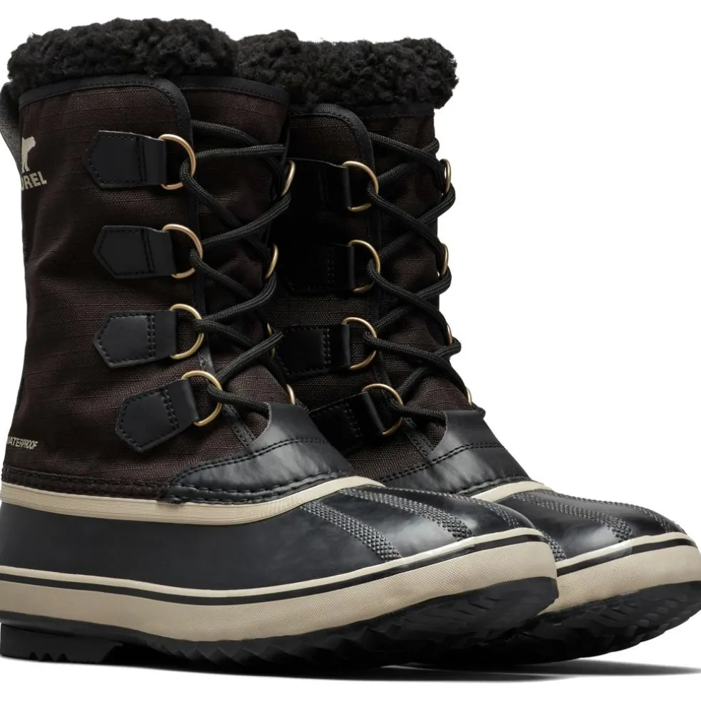 De 1964 Pac Nylon snowboots van Sorel zijn volledig waterdicht en voorzien van sneeuwvangers, zodat u geen natte, koude voeten kunt krijgen. De binnenzool is uitneembaar en gemaakt van materiaal dat warmte en comfort biedt.