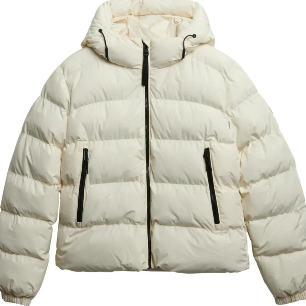 De Superdry Puffer winterjas voor dames is een comfortabele, veelzijdige en functionele jas gemaakt van hoogwaardige materialen. Deze materialen zijn behandeld waardoor ze een waterafstotende afwerking hebben. Zo kunt u perfect het winterweer trotseren en blijft u comfortabel warm en droog.